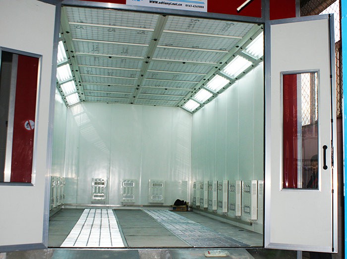 5、在烤漆房只能進行噴涂和烘烤工序,而且烤漆房房門只可在車輛進出時開啟,開啟房門時需要開動噴涂時的空氣循環系統以產生正壓,確保房外的灰塵不能進入房內;
